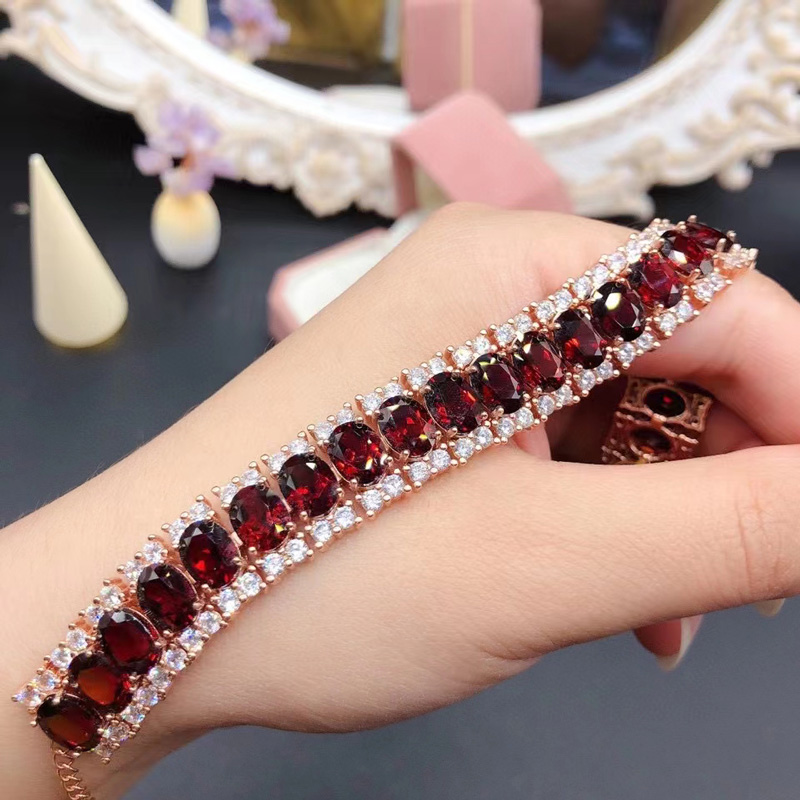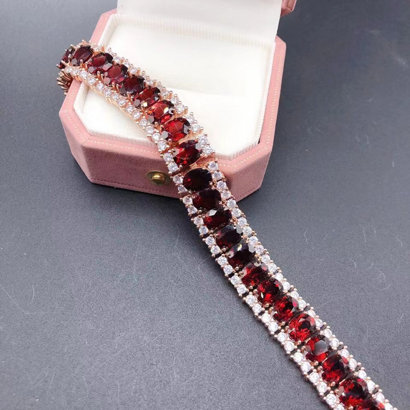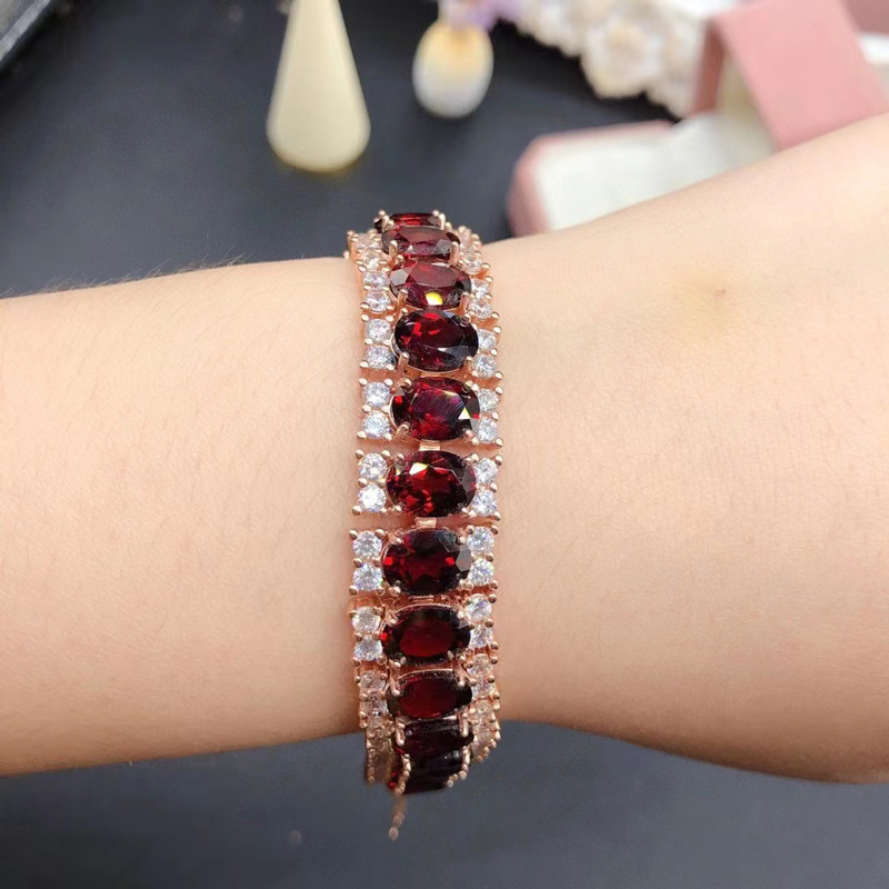 Elegant 24ct Garnet Silver Wedding Bracelet