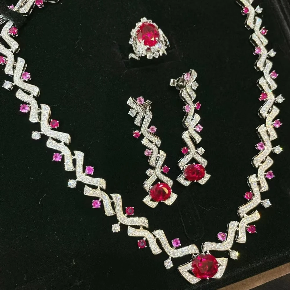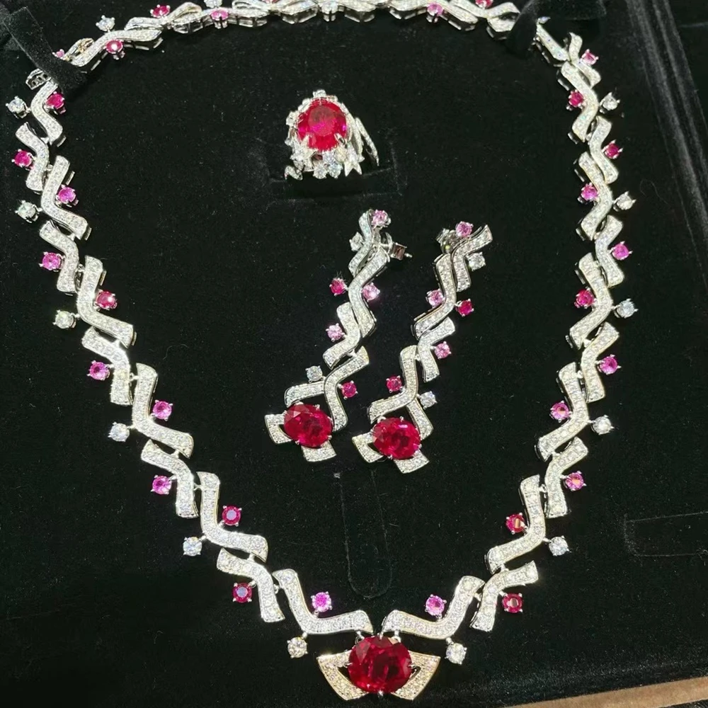 Luxury Ruby & High Carbon Diamond Jewelry Set